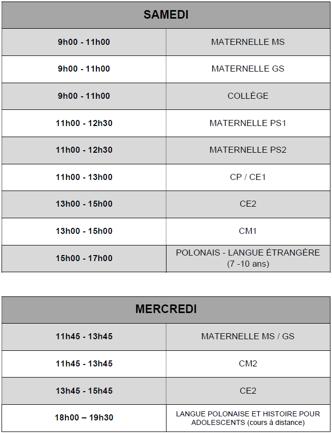 Notre équipe pédagogique est constituée d’enseignants professionnels. Nous utilisons des manuels accordés par le Ministère de l’Education Nationale et distribués par le Centre Pour le Développement de l’Education Polonaise à l’Etranger ORPEG. Nos enseignantes préparent également des activités selon leurs propres méthodes et idées.